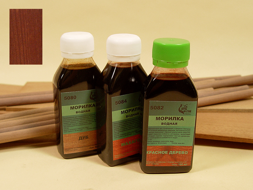 ¡Consejo útil! Para prolongar la vida útil de la madera cuando se trata con tinte de agua, la superficie del material debe empaparse en agua corriente antes de aplicarlo. De esta forma, el producto debe dejarse por un día, luego repasarlo con papel de lija y cubrirlo con tinte.