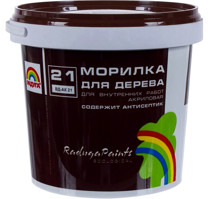 Para proteger los productos de madera del moho y los hongos, una de las mejores opciones es el tinte Rainbow 21. Este tinte acrílico contiene ingredientes especiales. Esta herramienta tiene excelentes propiedades de adhesión y se puede utilizar para procesar varios tipos de madera.