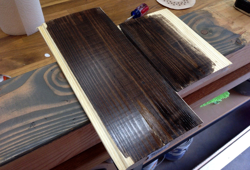 - Se aplica otra capa de tinte.En este caso, el tablero está cubierto solo por 2/3 de su área.