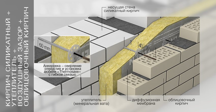- Las paredes de material, independientemente del tamaño de los ladrillos de silicato estándar o de uno y medio, deberán aislarse adicionalmente. Una opción alternativa es hacer paredes más gruesas, pero el aislamiento es más simple y económico;