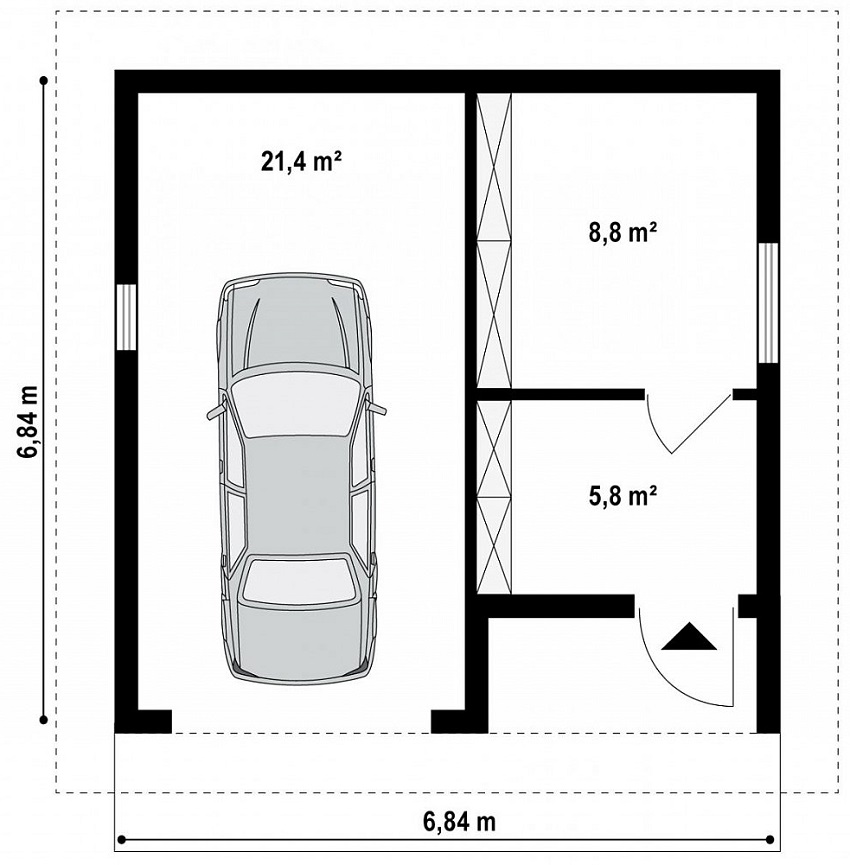 Si el diseño del sitio no permite construir una casa con un garaje adjunto, puede solicitar la construcción de un garaje independiente a partir de paneles SIP. Las ventajas de un garaje independiente son la disponibilidad de construirlo en el sitio independientemente de otros edificios y la casa principal, así como la posibilidad de organizar reparaciones menores o pequeñas producciones en el garaje.