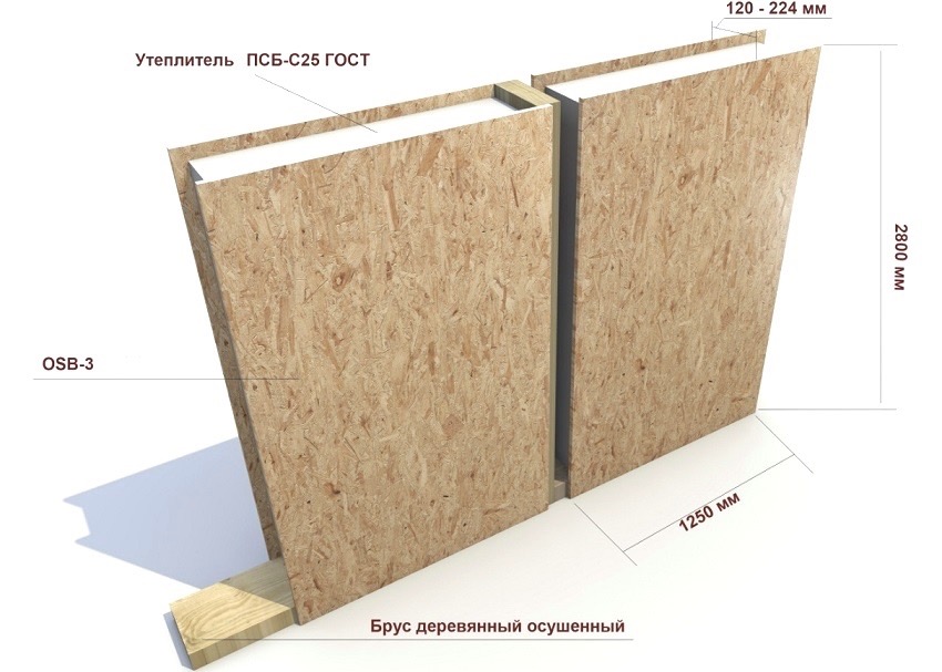 Egger (se utiliza una placa OSB-3 de la empresa alemana Egger como capa exterior) | PSK "Dom Stroy" | 2500х1250х124 | 3000 |