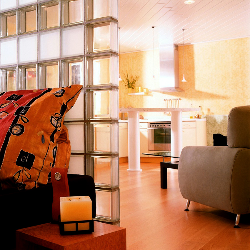 Según el ámbito de aplicación, existen bloques de vidrio decorativos e industriales. La primera opción se utiliza para terminar locales residenciales y de oficinas.El material se utiliza para crear tabiques, ventanas, elementos de mobiliario, revestimientos de paredes y puertas. Debido al hecho de que los productos están disponibles en varias formas, tamaños, colores y texturas, se pueden utilizar para incorporar las soluciones de diseño más atrevidas e inesperadas.