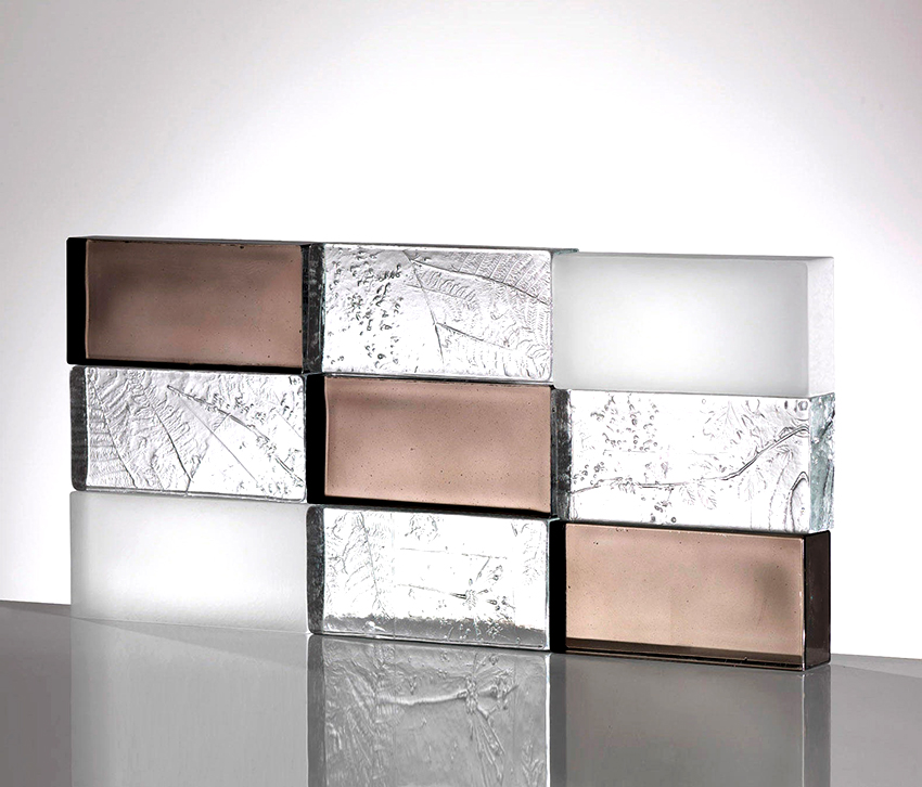 Si la pregunta es dónde comprar bloques de vidrio diseño exclusivo, debe comunicarse con la empresa italiana COGIR GLASS, que se dedica a la producción de productos únicos, lo que se refleja en su costo. Puede comprar un bloque de vidrio desde $ 17. El fabricante utiliza una técnica de fabricación única, como resultado de la cual se aplican pequeñas bolas de color de vidrio al vidrio. Usando estos elementos, se crea un patrón en la superficie del producto. Las imágenes completas pueden estar compuestas por varios de estos bloques. Y los productos con patrones abstractos se pueden combinar de forma segura con bloques de vidrio ordinarios.