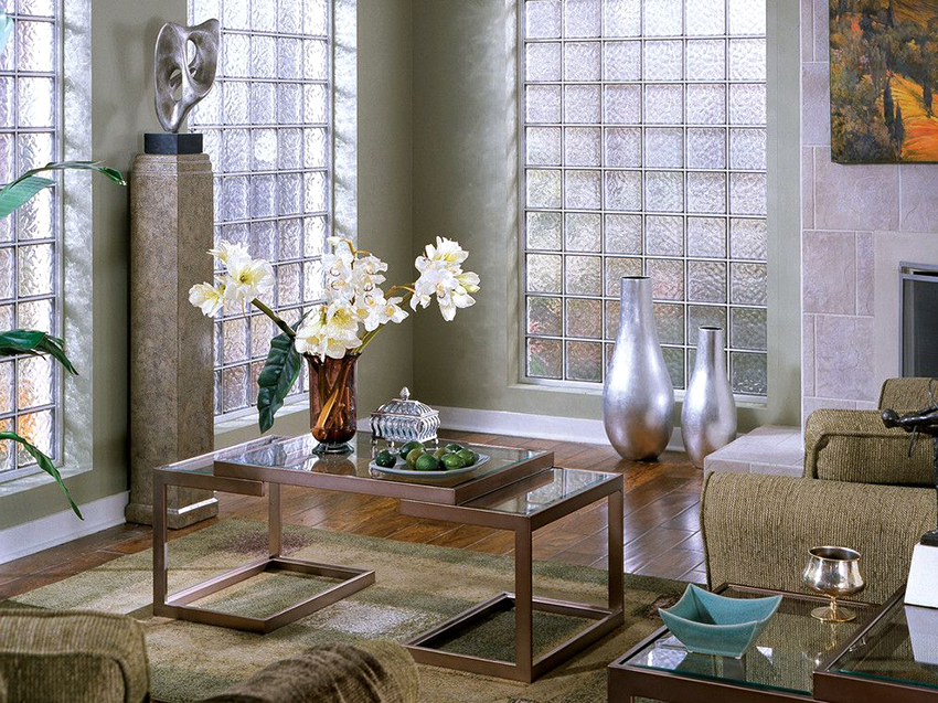 - en las habitaciones donde se utilicen bloques de vidrio, debe haber accesorios decorativos de madera, tela o elementos de forja;