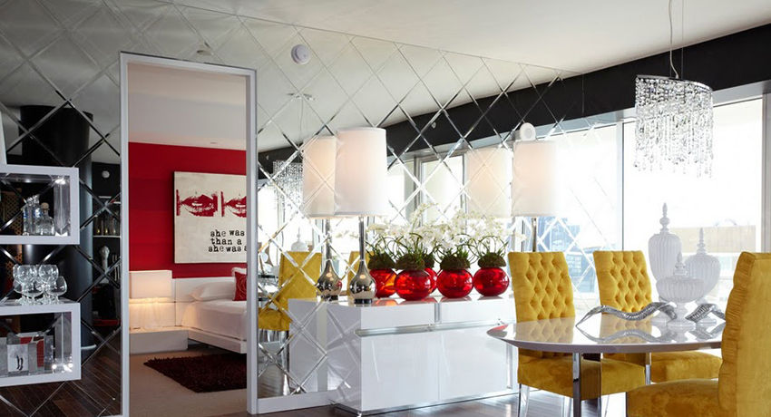 Características del material de acabado. Variedades de productos. Panel de espejos en el interior de locales para diversos fines. Colocación de azulejos.