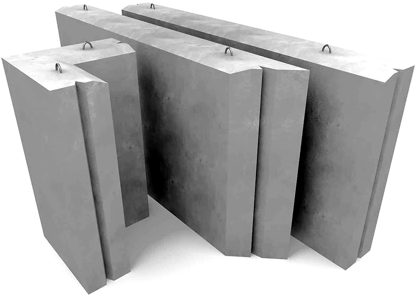 Los bloques FBV están representados por estructuras monolíticas y se fabrican exclusivamente bajo pedido para un objeto de construcción específico. La principal característica distintiva de los elementos es la ranura longitudinal, que se utiliza para colocar líneas de servicios públicos. Los productos se fabrican en longitudes de 880 mm, altura de 580 mm y anchos de 400, 500 y 600 mm. Para la fabricación de bloques se utilizará hormigón de grado B7.5 y superior. Estos elementos se colocan en el subsuelo con fines técnicos y en el área del techo de las estructuras del sótano.
