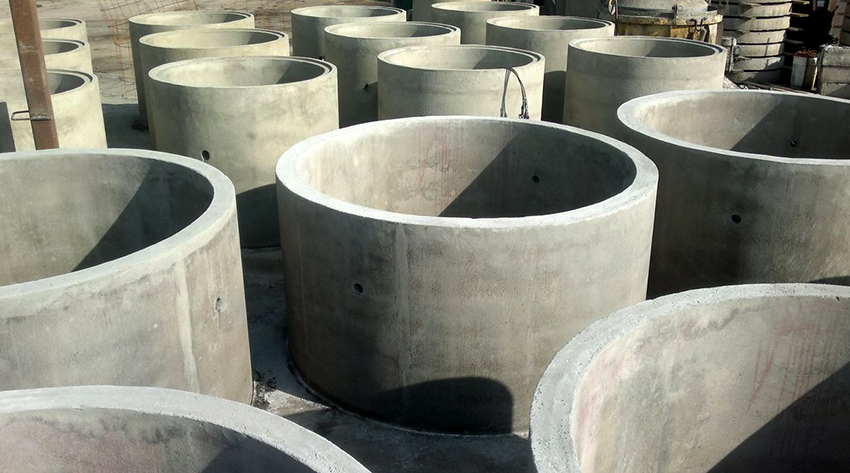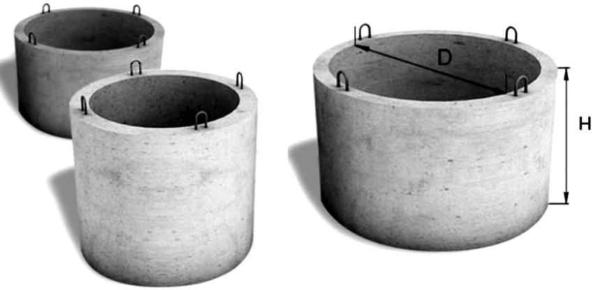 ¡Importante! Los anillos de hormigón armado se producen en forma de productos y elementos convencionales, completados con un fondo y una superposición del tamaño adecuado.