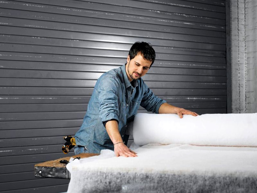 El paso final es envolver el producto con una tela de tapicería densa. Es deseable que la tela de tapicería esté presente en otros muebles, por ejemplo, en otomanas o cortinas, lo que asegurará la armonía del interior y la cama con un cabecero suave. Las fotos de ejemplos de diseño ayudarán a crear un diseño exquisito.