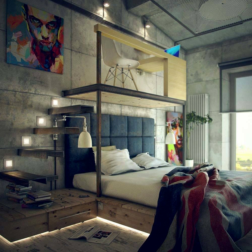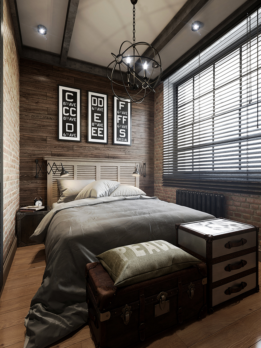 El espacio libre y la sencillez son bienvenidos en el estilo loft. Esta dirección se considera la más lacónica y un poco brutal. La cabecera en tal dormitorio se puede hacer en forma de ladrillo, enmarcada por un techo y un piso hechos de tablas envejecidas artificialmente. La habitación debe tener un mínimo de muebles, por lo que una cama será suficiente. Los sistemas de almacenamiento se esconden mejor en nichos disfrazados de paredes. Es necesario que la decoración esté presente en una cantidad mínima, por lo que el cabecero debe ser lo más sencillo posible.
