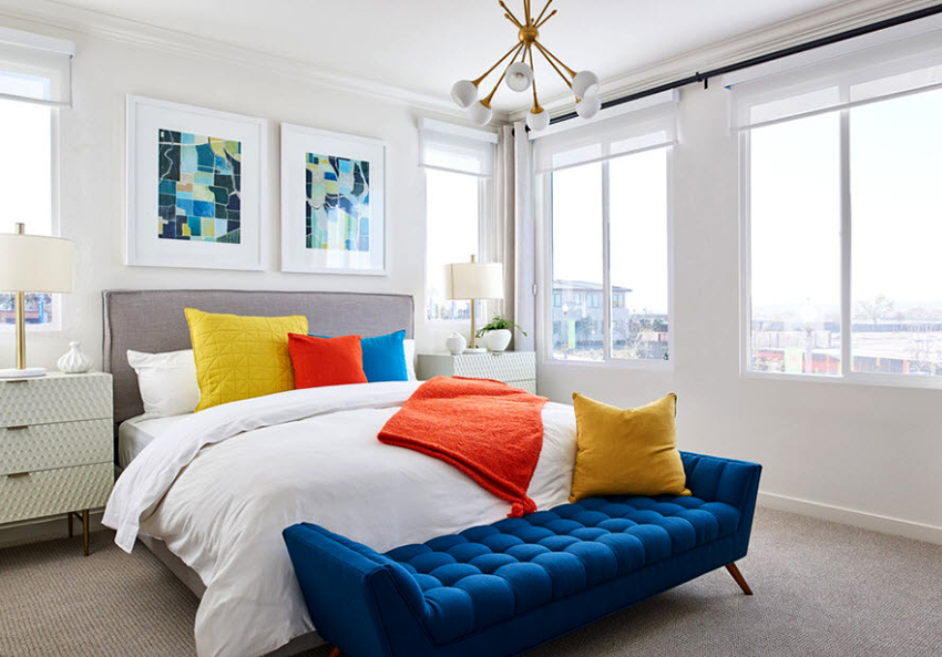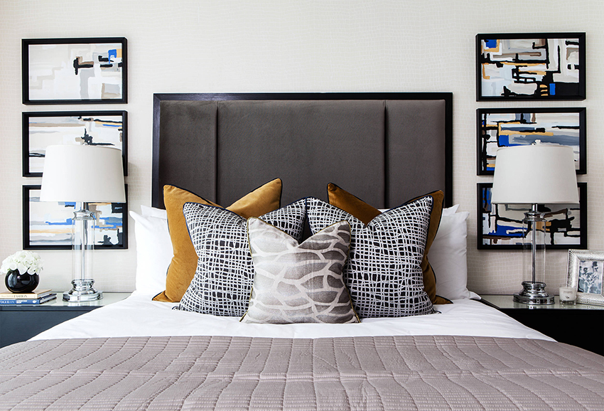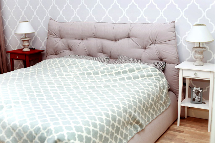 - las almohadas sobre la cabecera son una forma de decoración sencilla pero bastante original;