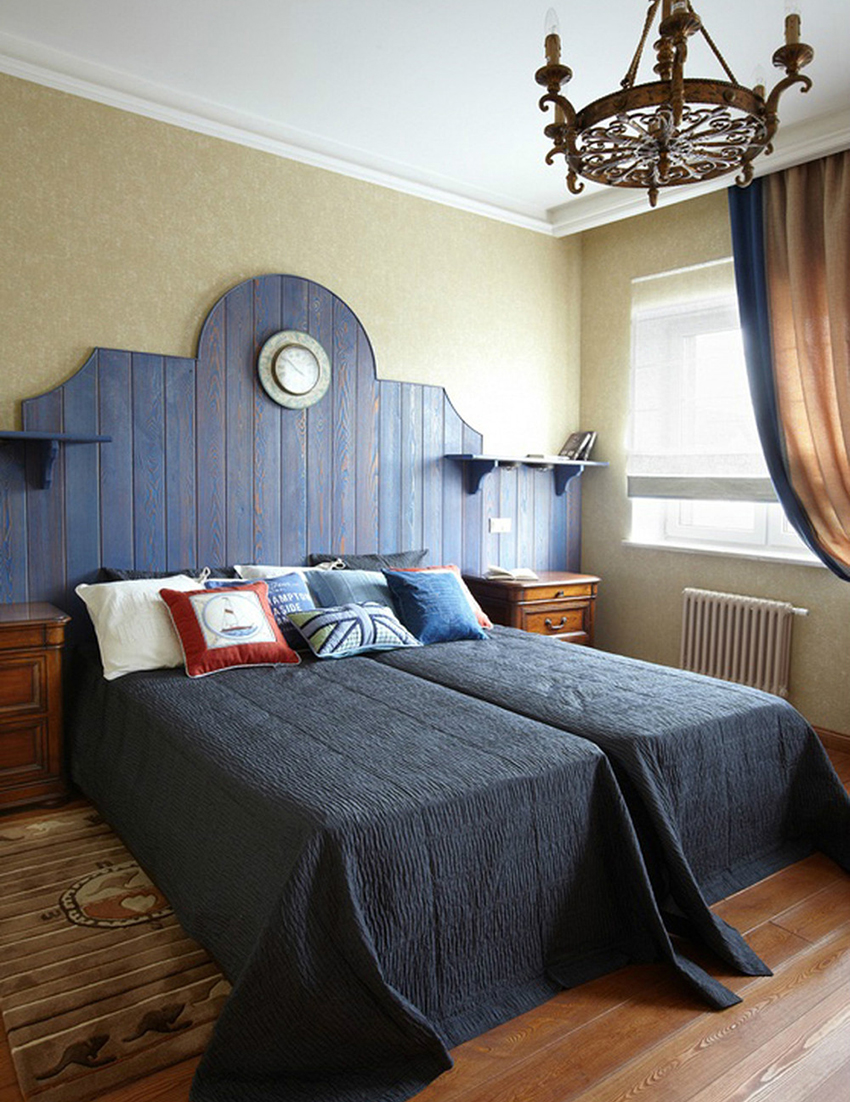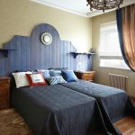 Las instalaciones en estilo provenzal deben estar saturadas de luz y comodidad, irradiar romance. Una habitación como esta tiene un estilo provincial francés, por lo que los cabeceros sugieren una gran cantidad de textiles con estampados florales en colores claros. Los muebles en sí deben estar hechos de madera con un efecto envejecido. Los cabeceros hechos con tablas pintadas o puertas viejas encajarán orgánicamente en esta dirección.