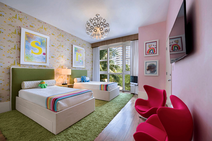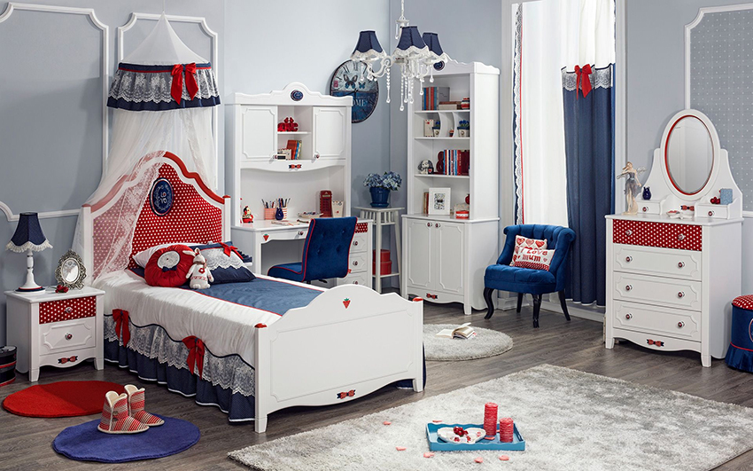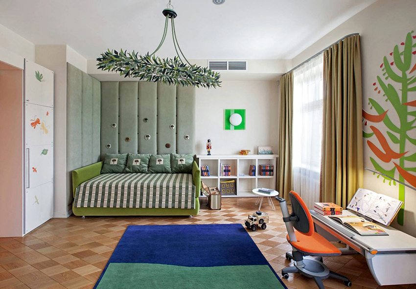 Una espalda brillante se verá bien en la guardería, lo principal es que se combina con uno de los elementos interiores.