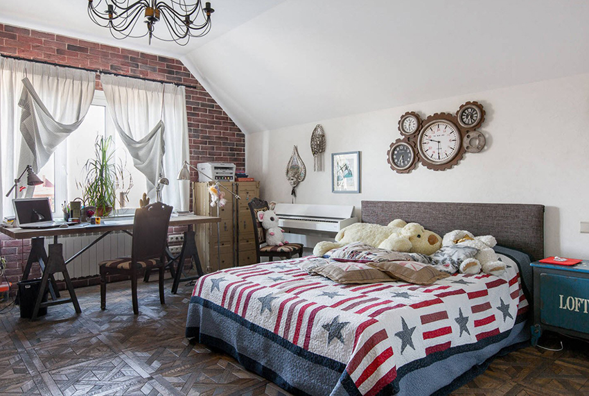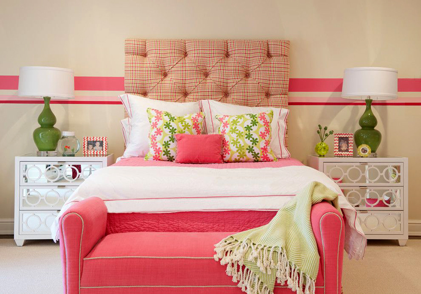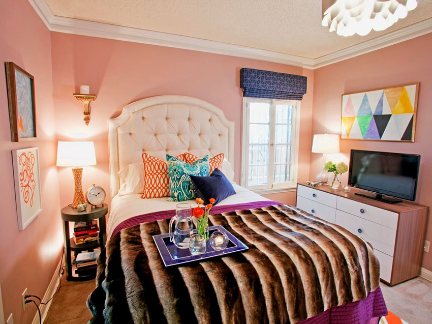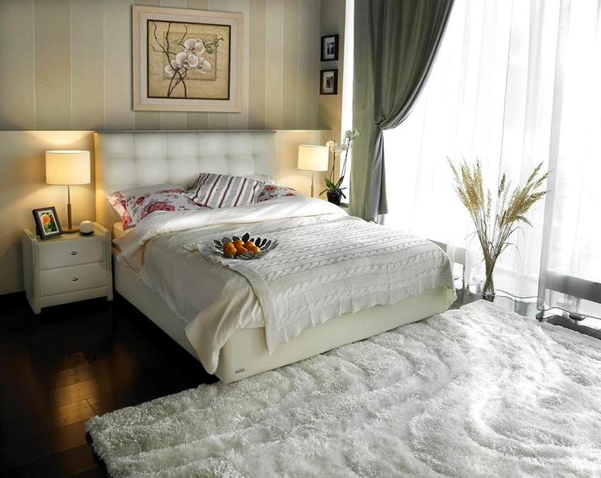- casi cualquier textil (desde simple algodón, satén hasta exquisitos felpa y terciopelo) se usa con bastante frecuencia para decorar camas, lo que aporta comodidad y confort a la atmósfera de la habitación;