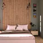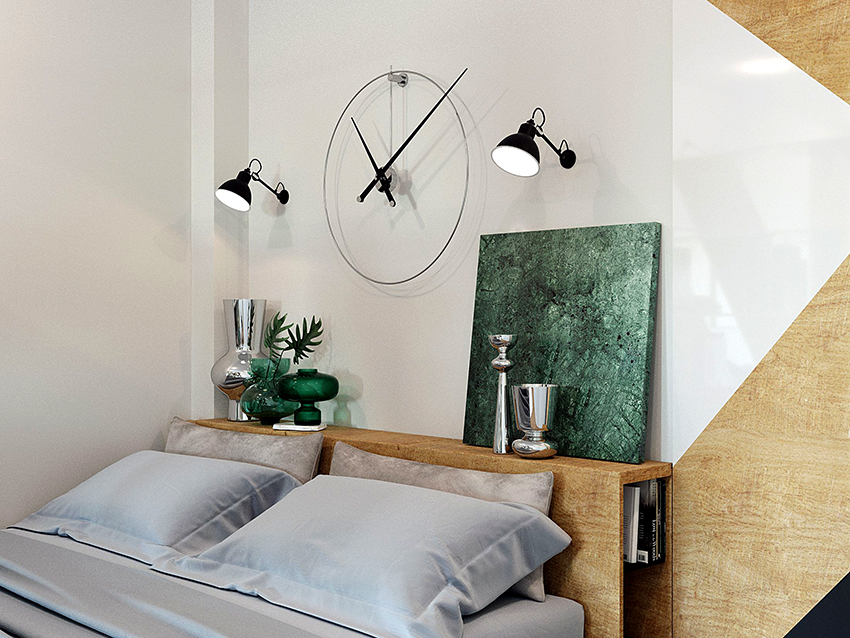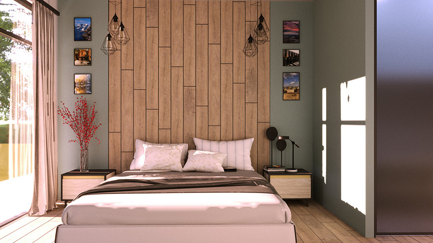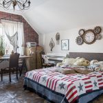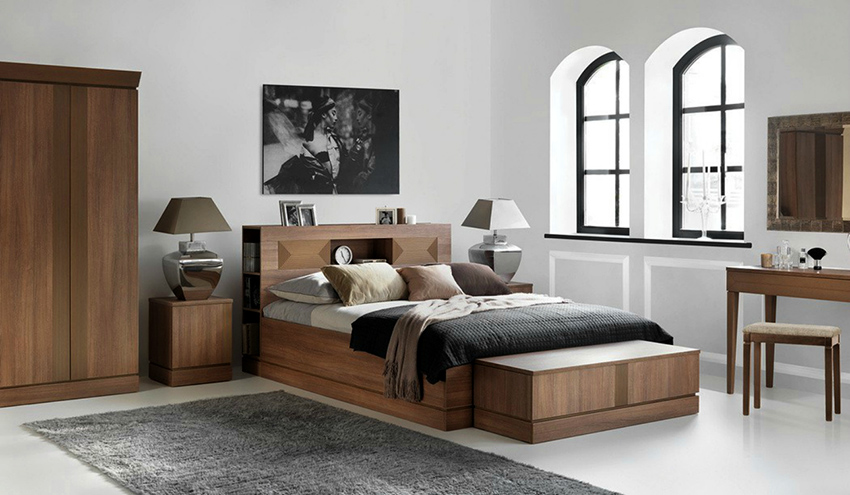Si se persigue la idea de la ergonomía, vale la pena detenerse en los productos en forma de gabinetes de pared y estantes. Para un dormitorio de estilo rústico donde la sostenibilidad es bienvenida, una cama con cabecero de madera es ideal.