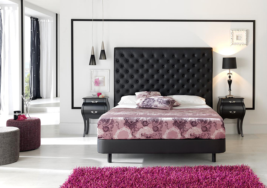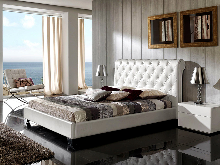 - una corbata tipo carruaje capitoné o un cabecero suave de cuero, sus sustitutos, textiles y otros materiales: una opción beneficiosa para los amantes del lujo;