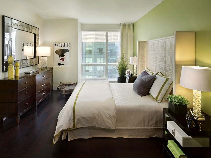 La cama es el lugar principal del dormitorio donde se centra la atención principal, por lo que debes tener más cuidado con el estilo del fondo. Cada estilo asume sus propias sutilezas y detalles, por lo que consideraremos algunos de ellos como ejemplos.