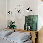 - Se monta directamente en la pared con la cabecera colocada directamente sobre la cama. Para este propósito, es necesario prever la presencia de bucles en la parte posterior y una fijación segura de ganchos o pernos en la pared. Esta opción asume el cumplimiento de las reglas de seguridad incrementadas para que la espalda no se colapse.