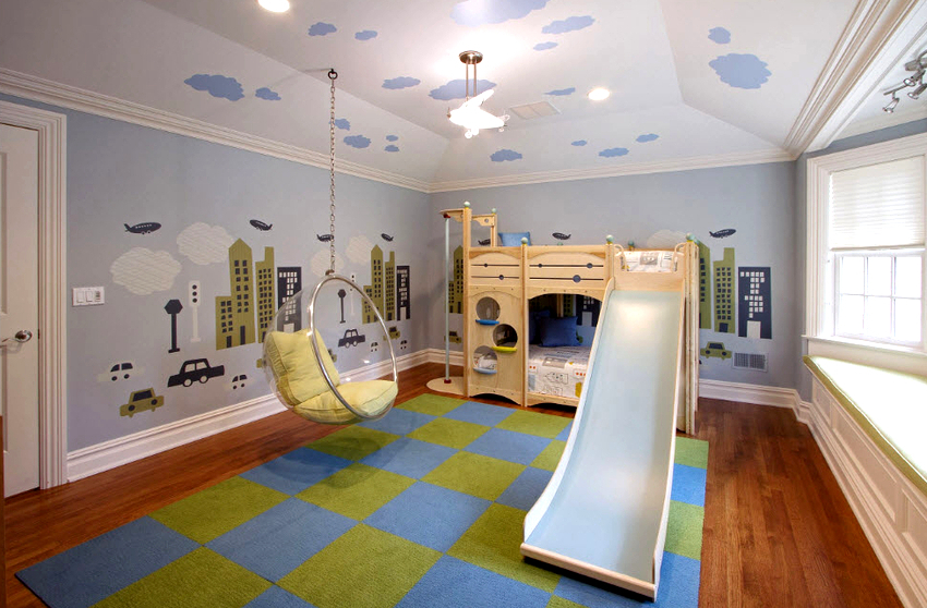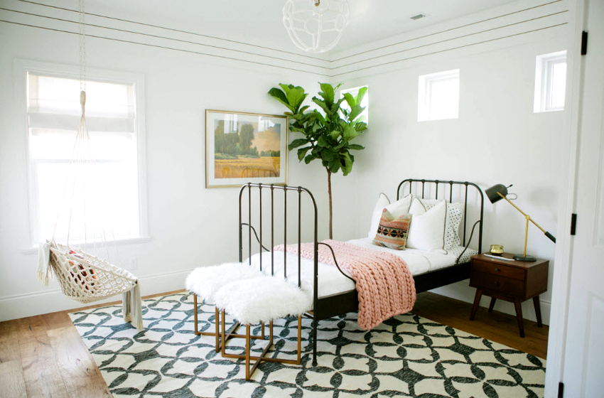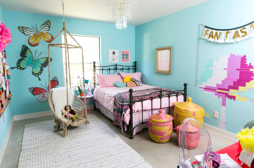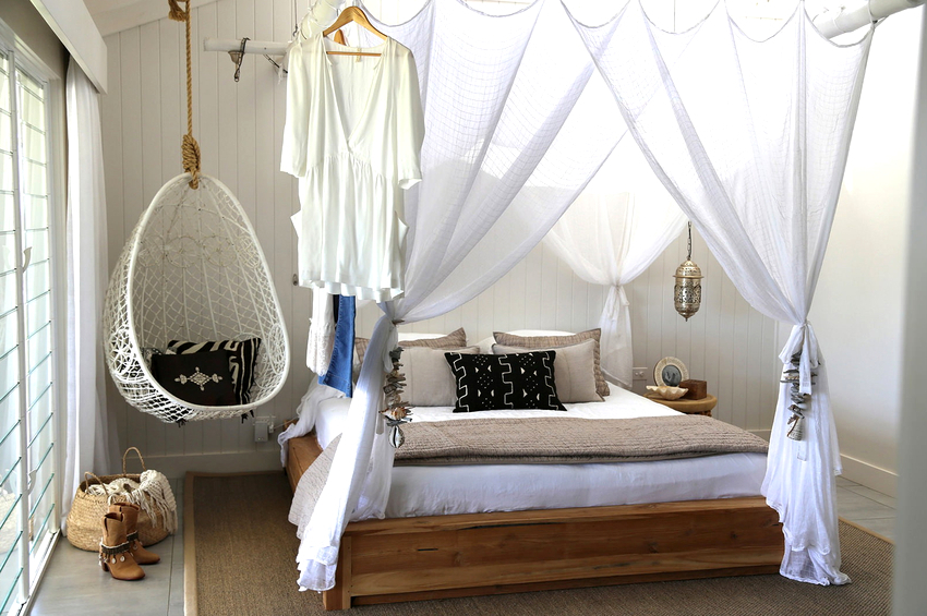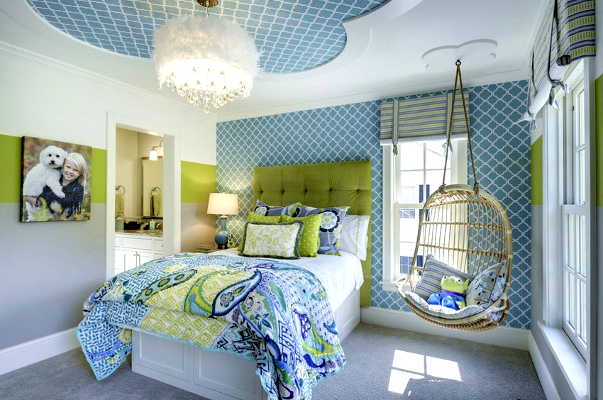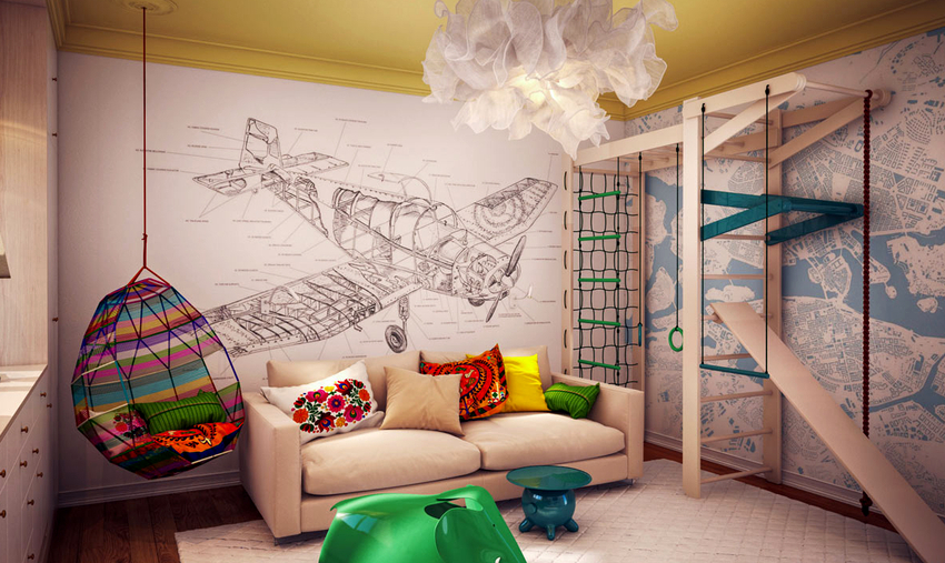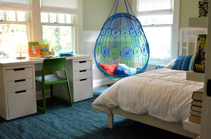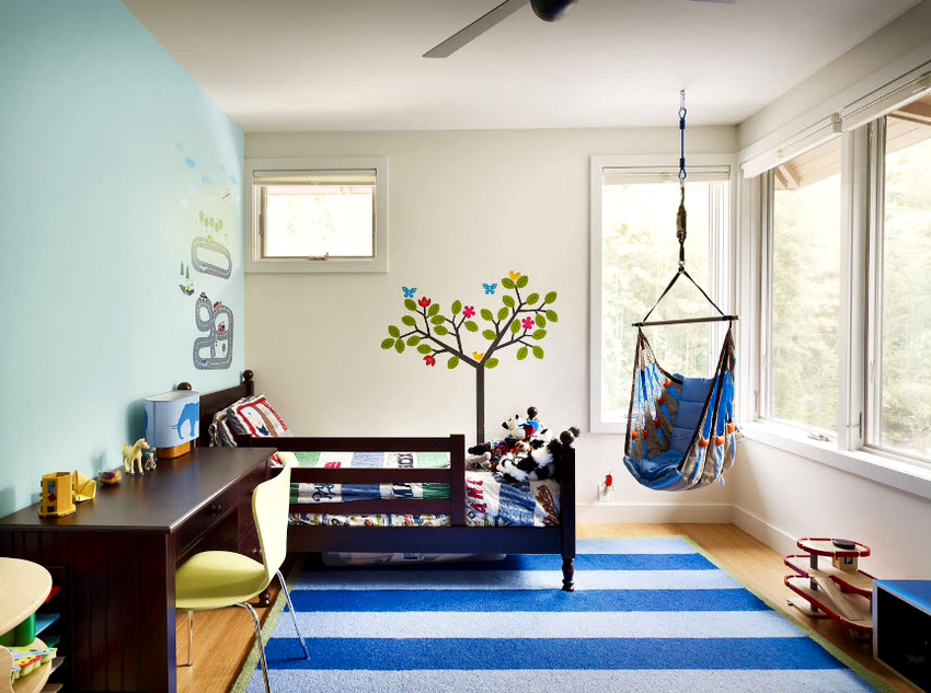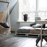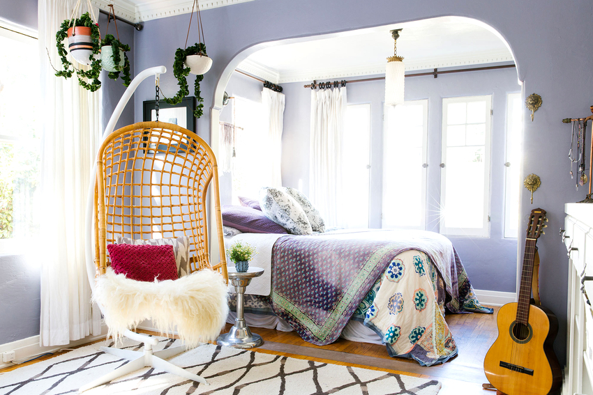 Es mejor planificar el interior de una habitación con una silla colgante incluso durante el proceso de renovación.