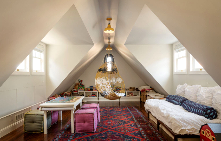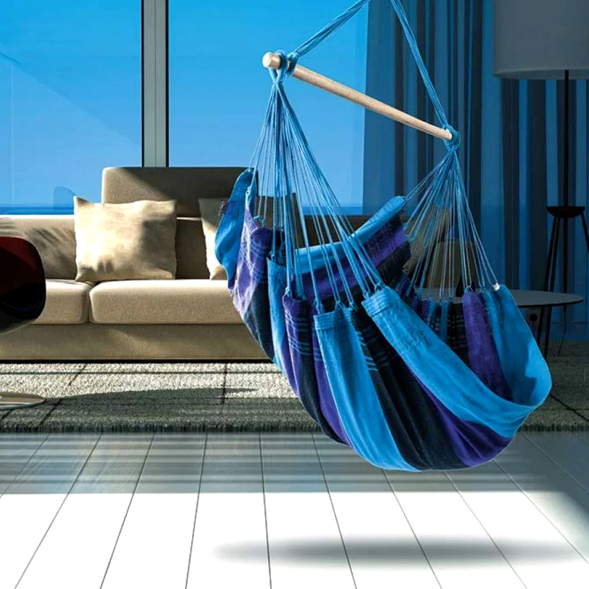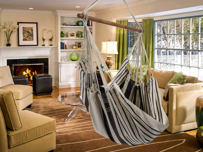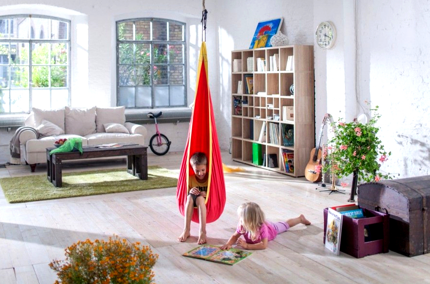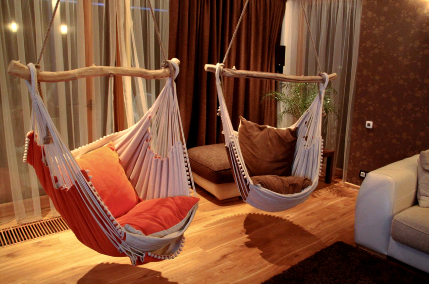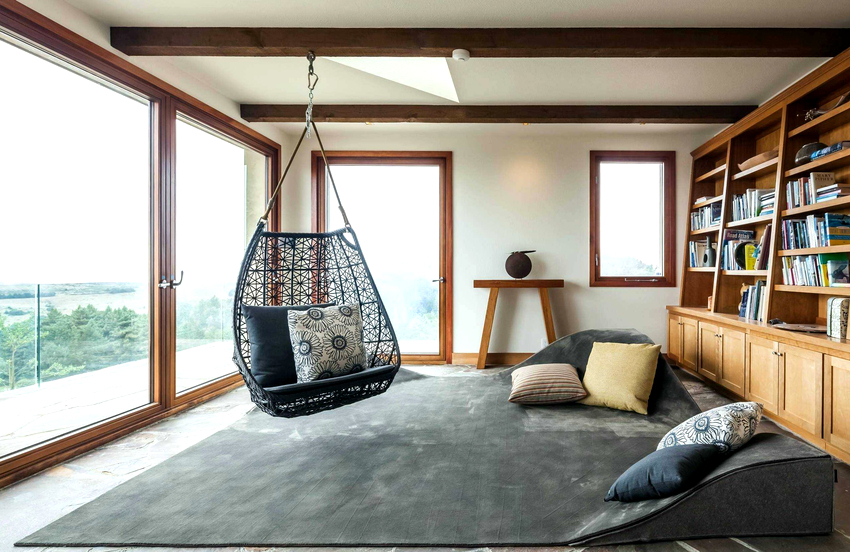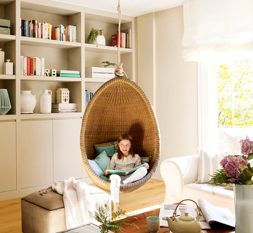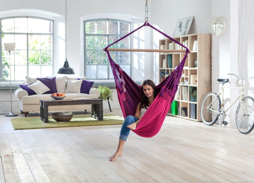 No te olvides del peligro: si el soporte se suelta, esto provocará la destrucción de parte del techo. Las estancias principales en las que conviene instalar una silla colgante: