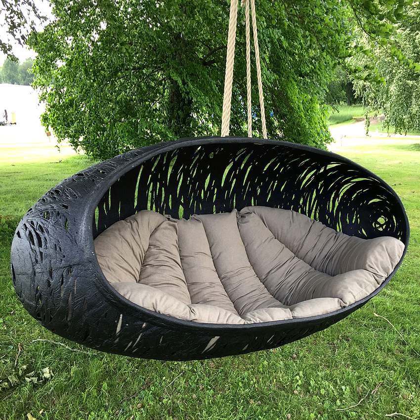 La versión más popular de la silla hamaca es el modelo Ekorre, que llama la atención por su diseño inusual.