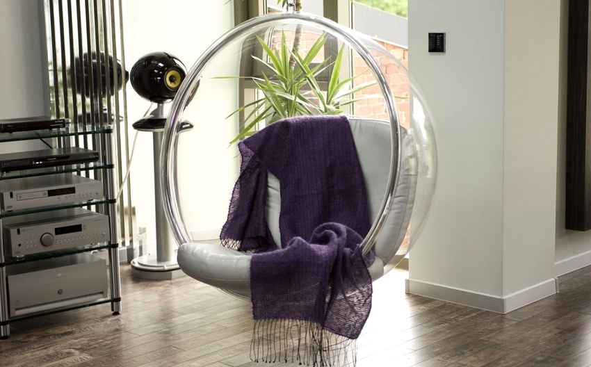 La propia silla en apariencia se asemeja a un capullo, hamaca o bola colgante, que está suspendida por un gancho del techo o instalada en un soporte sólido especial. El producto ganó popularidad debido a su capacidad para girar en diferentes direcciones e incluso girar alrededor de su eje, lo que trae recuerdos de una infancia sin preocupaciones en un columpio.