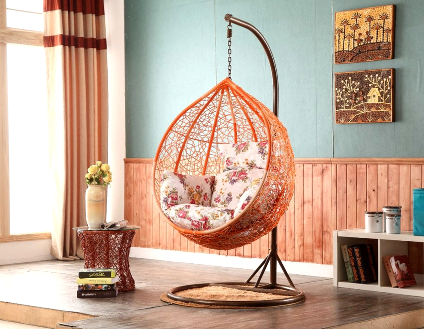 La apariencia original e inusual de la silla colgante complementará con éxito el interior en cualquier estilo.