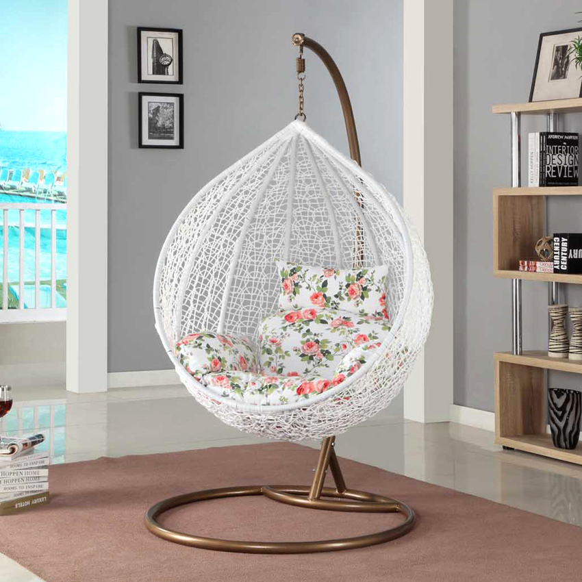 Los tipos más comunes de sillas colgantes de ratán son huevos, capullos, nidos o esferas. Gracias a la capacidad del material para crear ejes curvos y fuertes, el cuerpo es fuerte y mantiene su forma en cualquier posición de la persona sentada en el interior. La silla nido de ratán encajará incluso en el diseño de habitación más sofisticado y hará las delicias de la vista durante mucho tiempo.