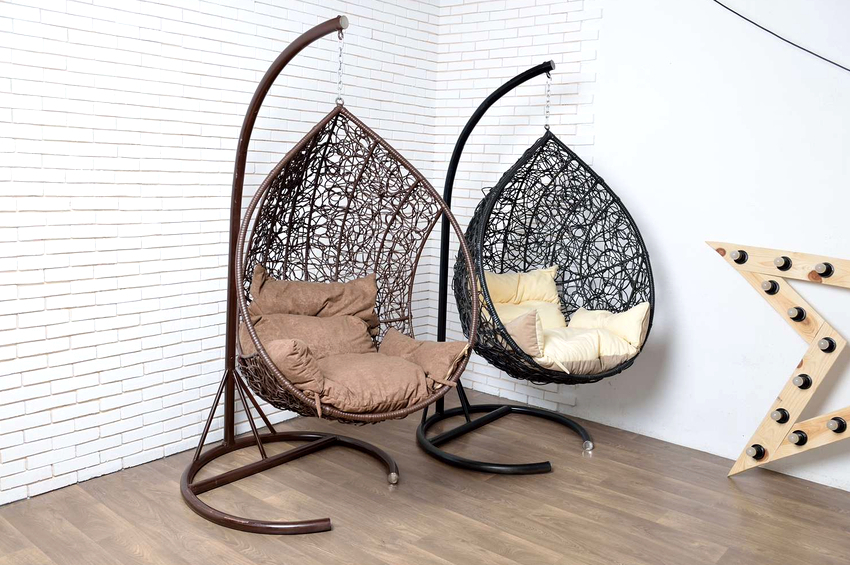 Solo un especialista podrá distinguir las sillas colgantes hechas de ratán artificial de los productos hechos de material natural después de sentir el producto. Además, según sus características, el ratán artificial tiene una gran cantidad de ventajas. Es más flexible, duradero y capaz de resistir los efectos tanto del sol abrasador como de la alta humedad.