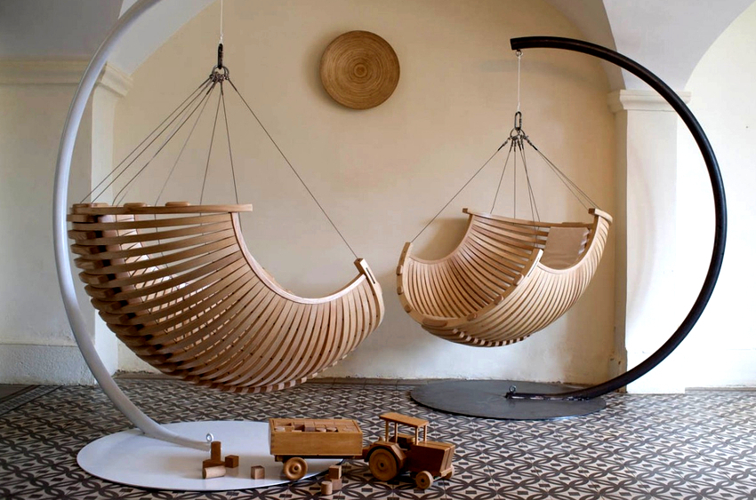 Por lo general, los diseños se asemejan a un columpio, por lo que se verán bien en una cabaña de verano o en la habitación de los niños, especialmente si se utilizan materiales naturales como la vid o el ratán para la producción.