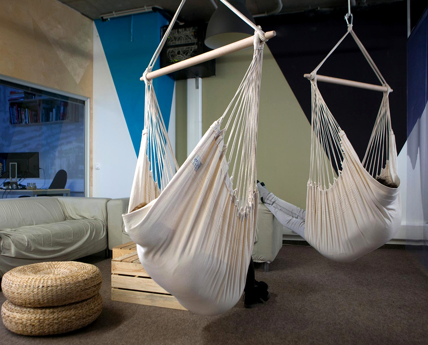 Inicialmente, el modelo fue diseñado para niños, pero con el tiempo ha ganado popularidad entre los adultos. El producto se monta en un gancho de techo o soportes de montaje que vienen con el producto, lo que permite la instalación no solo en el techo, sino también en la pared mediante una abrazadera especial. La hamaca es fácil de lavar a máquina y la almohada simplemente se limpia con un paño húmedo. La principal ventaja es el bajo precio (desde 2200 rublos).