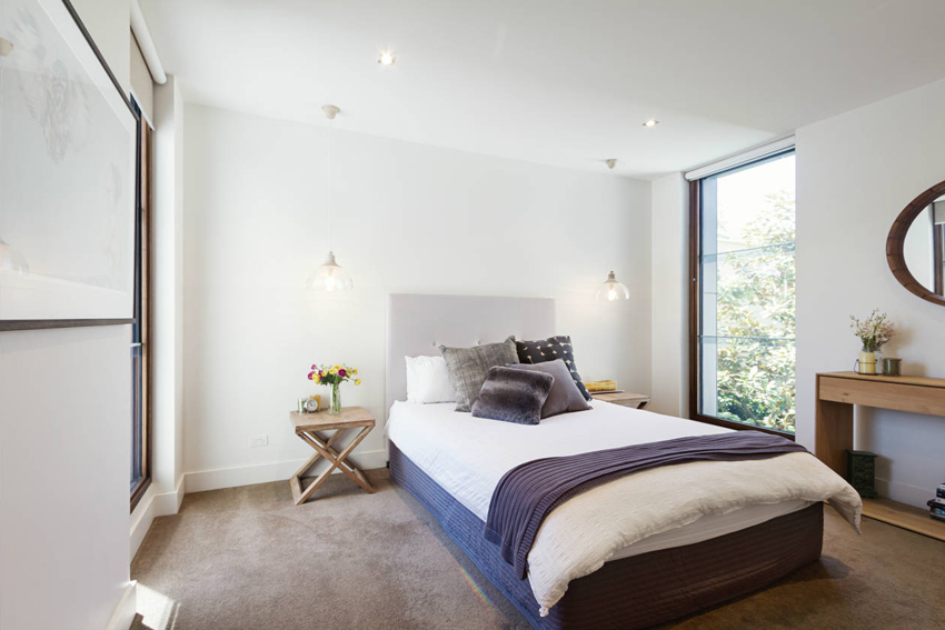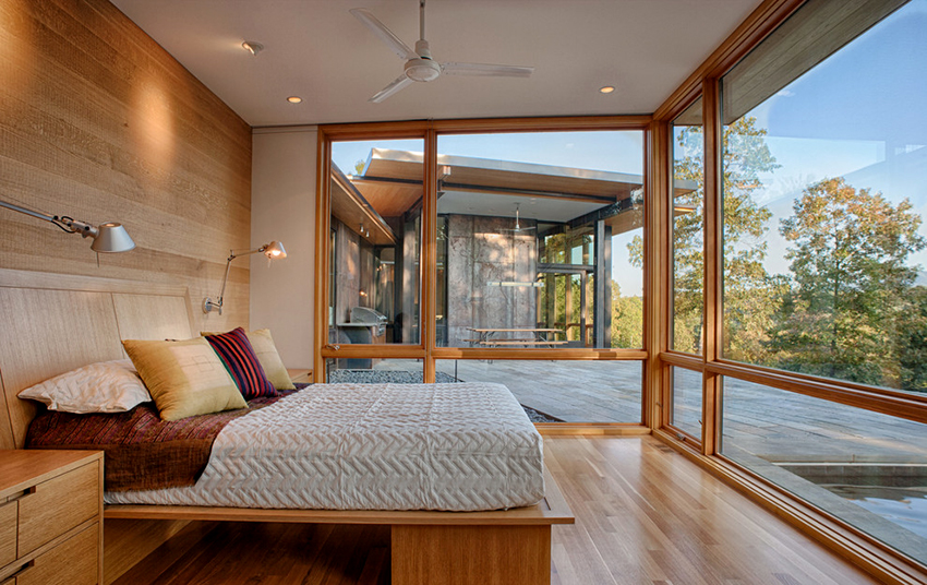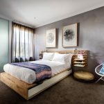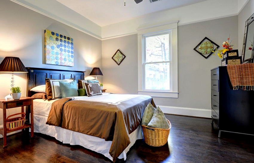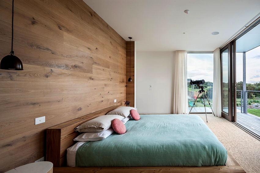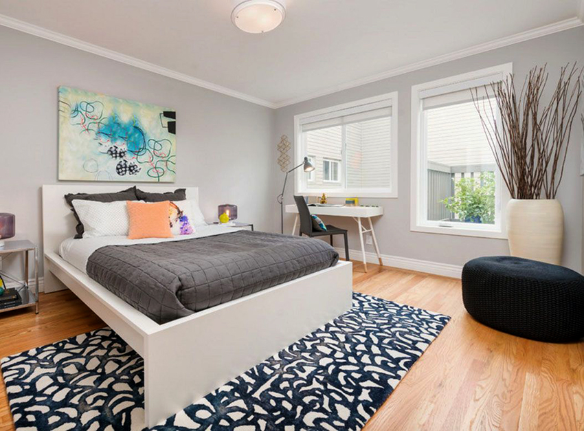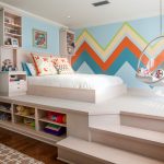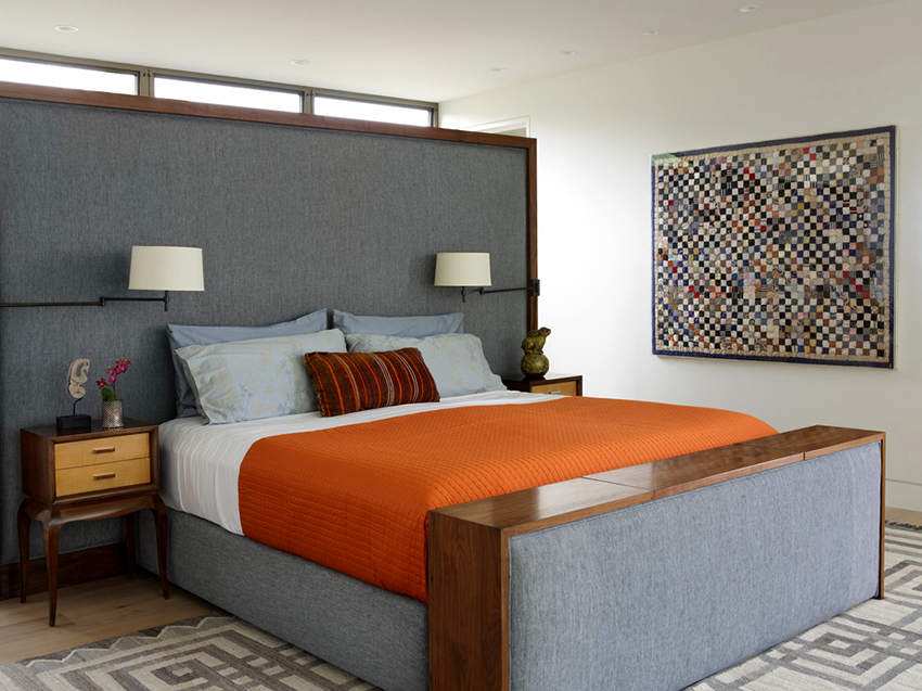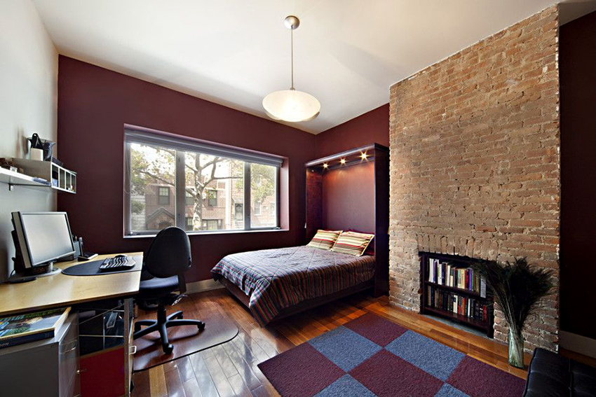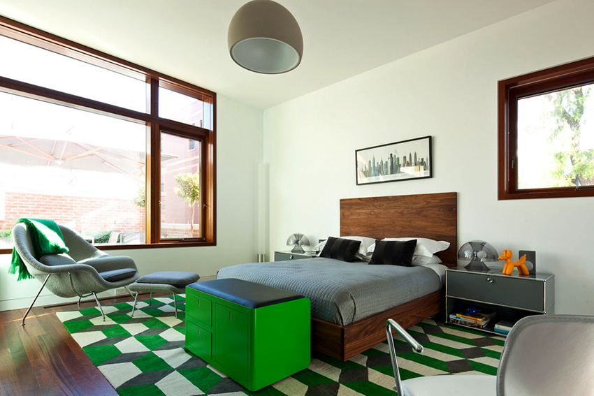 La última opción de diseño a menudo se instala en habitaciones pequeñas, donde es importante usar racionalmente cada centímetro de espacio. Aquí puede equipar un amplio sistema de almacenamiento en la zona de la cama.