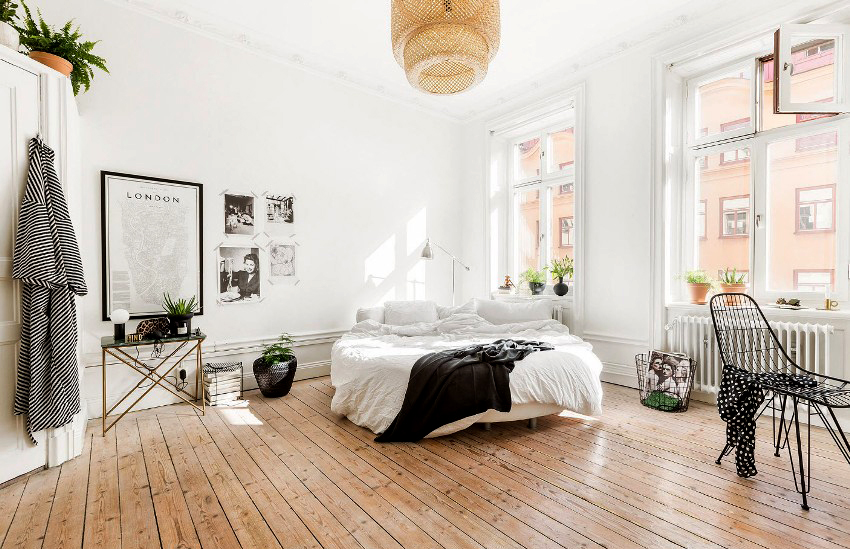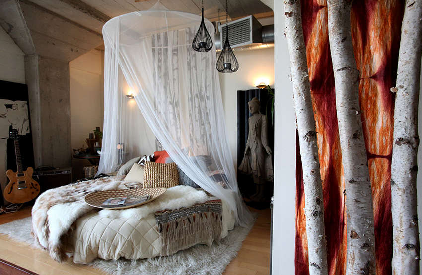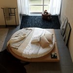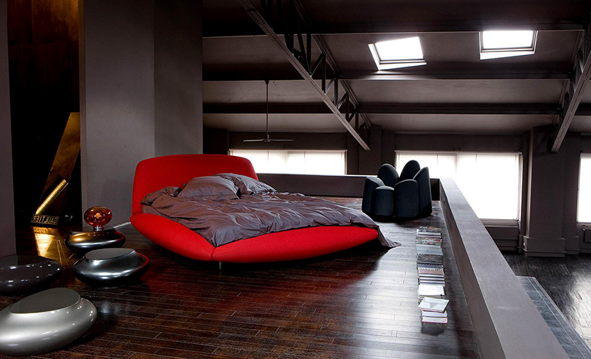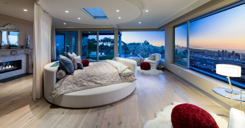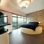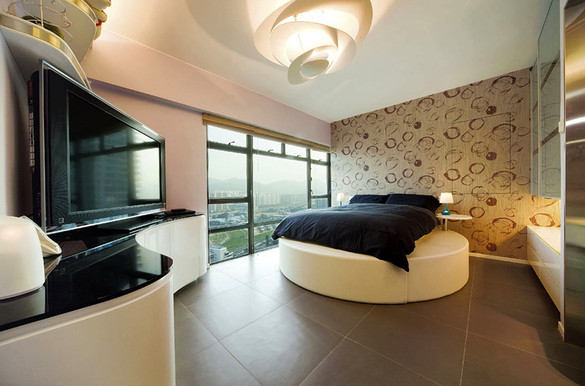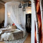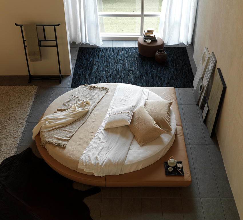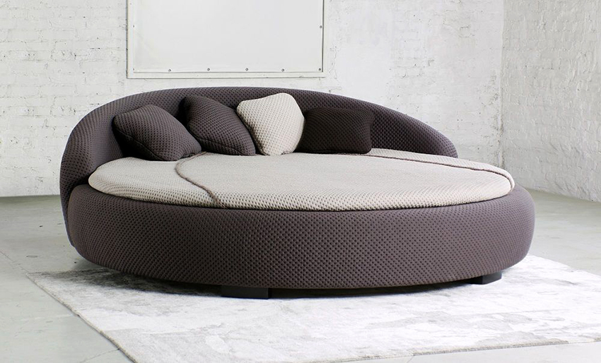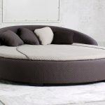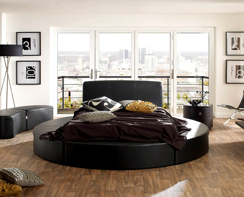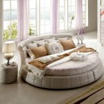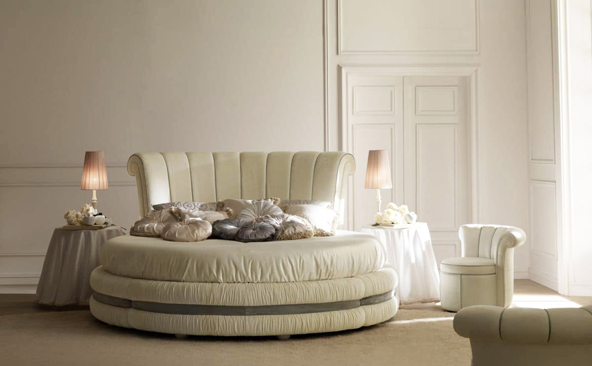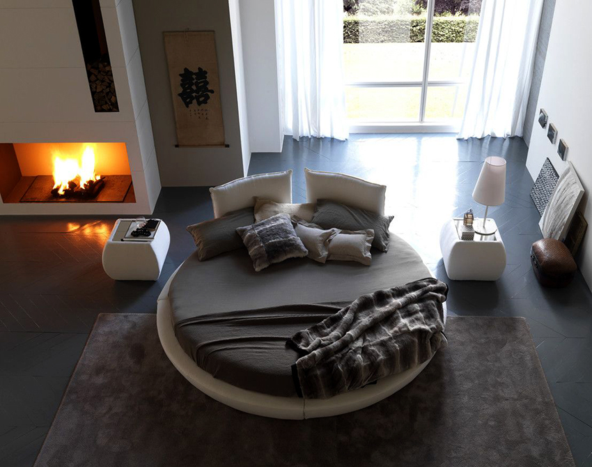 Puedes hacer una cama redonda con tus propias manos.Será un elemento inusual de la habitación, capaz no solo de decorarlo, sino también de resolver problemas problemáticos del espacio con paredes curvas. Este diseño en interiores modernos se instala en el centro de una habitación espaciosa, dándole un lujo real.