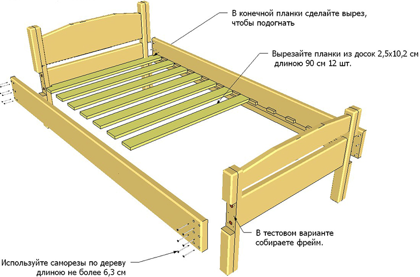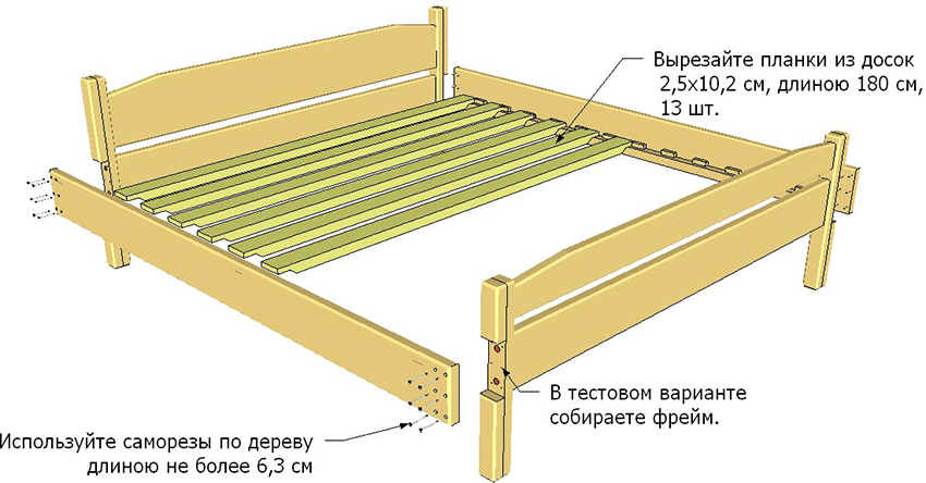 ¡Importante! Cuantas más tablillas tenga la base de la cama, más fuerte y duradera será la estructura.