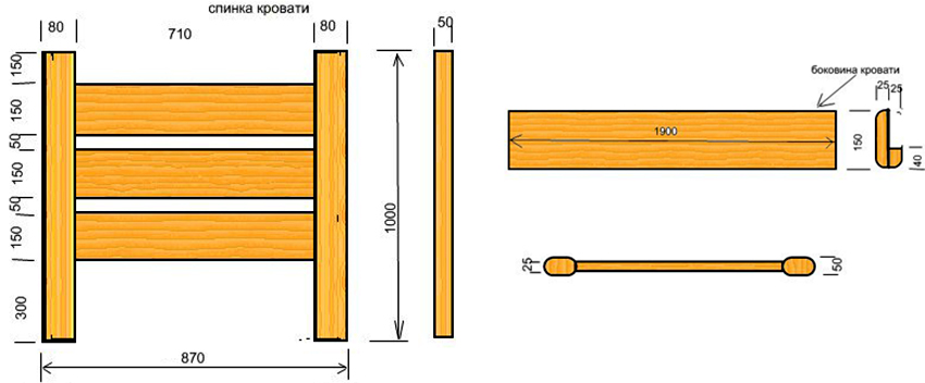- madera con una sección de 50x50 mm: para hacer el marco y las patas de la cama;