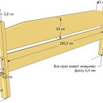 Cabecero de pared para litera está compuesto por 3 tableros con dimensiones 25x100x1800 mm y 12 barras con dimensiones 25x100x450 mm. Para la primera fila, que estará en contacto con la espalda, se utilizan productos cortos. Los sujetadores ocultos están equipados en el lado mareado. En los lugares apropiados de la cabecera, las placas de metal se atornillan con tornillos autorroscantes. Cuando se cuelgan, su borde libre se insertará en las ranuras de los neumáticos.