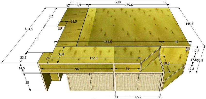 Antes de hacer una cama con un podio usted mismo, debe decidir la ubicación del producto. El espacio debe permitir sacar cajones o un lugar para dormir. Se crea un dibujo de la estructura terminada, después de lo cual se hacen las marcas correspondientes en las paredes y el piso de la habitación.