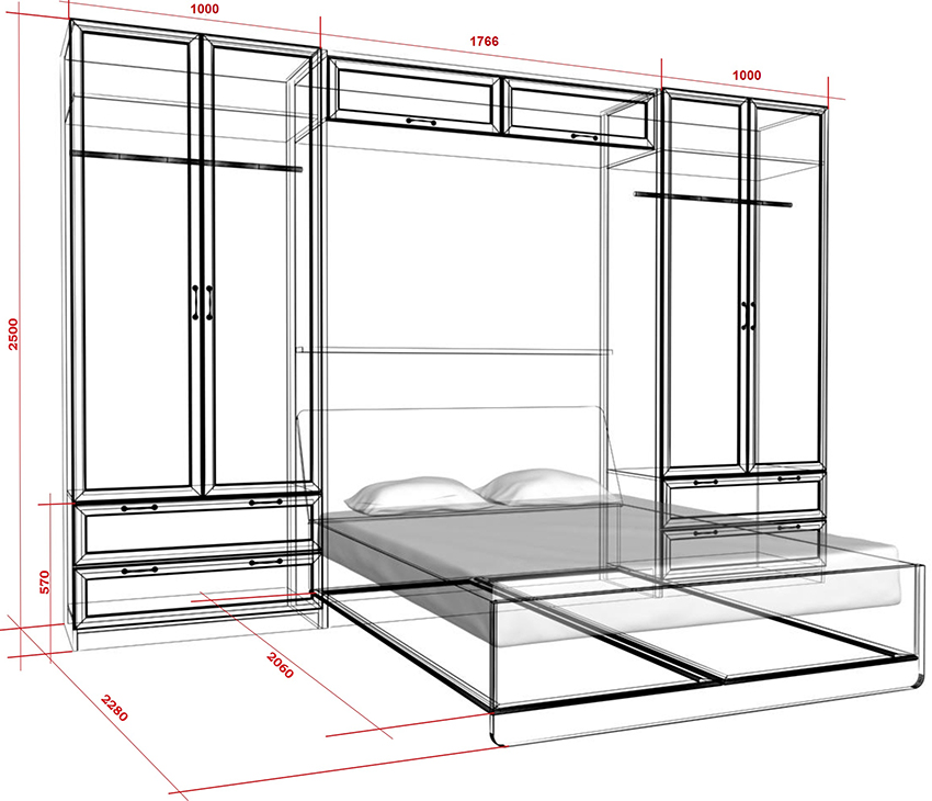Las dimensiones de la cama, que se indican en los dibujos de las camas, se seleccionan en función de los parámetros de la persona, el tamaño de la habitación, la cantidad de personas que dormirán en ella y los hábitos específicos de los propietarios. También hay dos formas de medir las dimensiones de una estructura. En los países europeos se utiliza el sistema métrico, es decir, el tamaño del producto se indica en metros. En EE. UU., Reino Unido y Australia, la unidad de medida base es el pie.