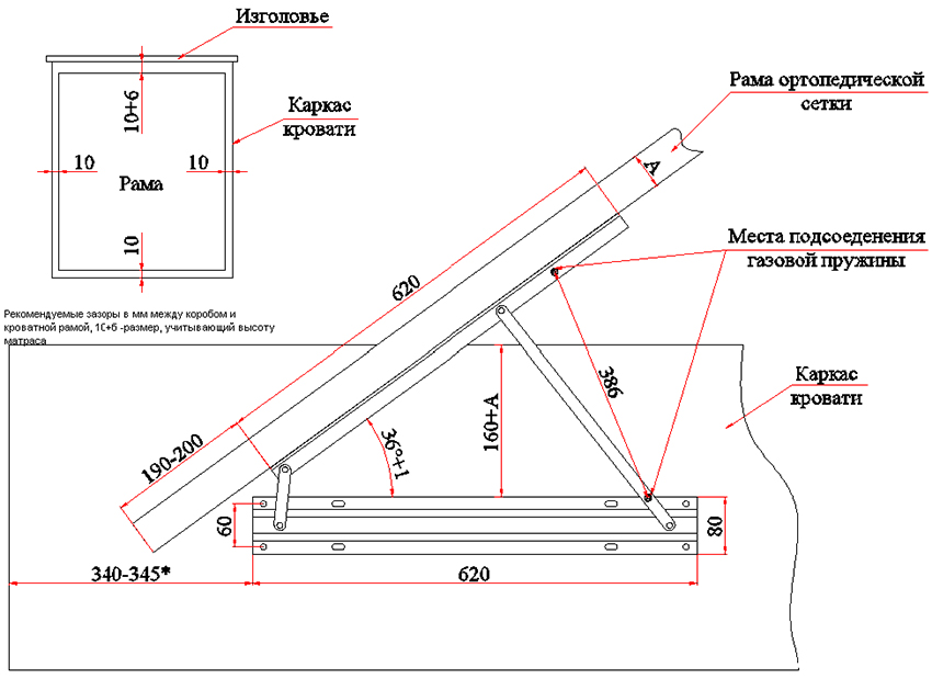 Para crear una cama con un mecanismo de elevación con sus propias manos, debe preparar un dibujo detallado del ensamblaje de los muebles, y también puede encontrar un diagrama similar en sitios especializados en Internet. Esto evitará muchos errores de diseño que posteriormente afectarán negativamente la funcionalidad de la estructura.