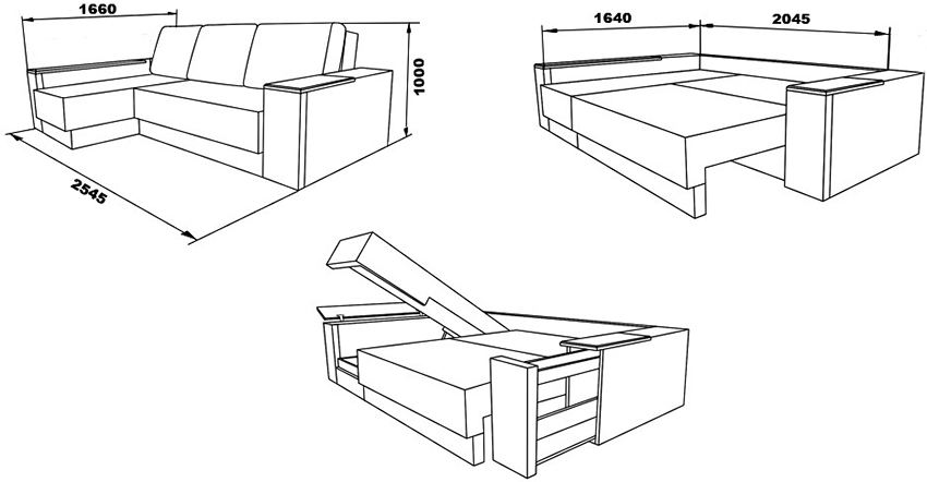 Incluso un artesano novato puede hacer un sofá cama de madera con sus propias manos. Las fotos de dibujos en Internet con las dimensiones indicadas de los productos ayudarán en este proceso. En la primera etapa, el marco de la caja para ropa se crea a partir de tablas con una sección de 25x200 mm.