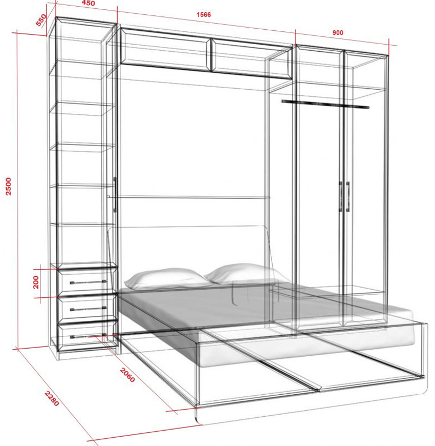 Cama de armario de bricolaje de madera: foto de dibujos y progreso del trabajo