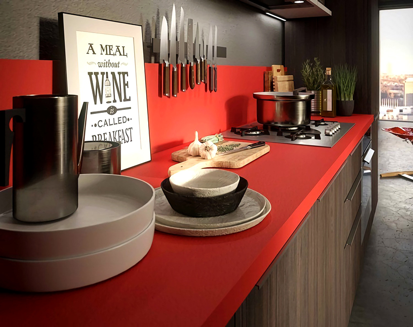 Las encimeras de más de 90 cm de ancho se adaptarán mejor a los parámetros de habitaciones espaciosas. En este caso, la profundidad de los gabinetes inferiores será de 76 cm.Las encimeras de 120 cm de ancho son adecuadas exclusivamente para cocinas profesionales o para amplios estudios, donde se asigna un área enorme para la cocina.