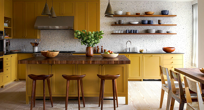 Cocinas sin armarios de pared: ejemplos fotográficos de diseño de interiores