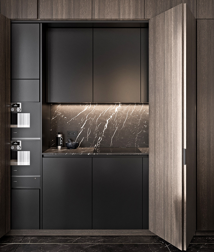 ¡Consejo útil! Debe elegir la ubicación del gabinete de la cocina según el modelo en sí. Un monobloque tipo caja generalmente se instala cerca de la pared y una versión empotrada se coloca en un nicho. En el primer caso, la cocina parece una oficina ordinaria o un armario con puertas, y en el segundo parece un armario empotrado que se asemeja a un refrigerador.