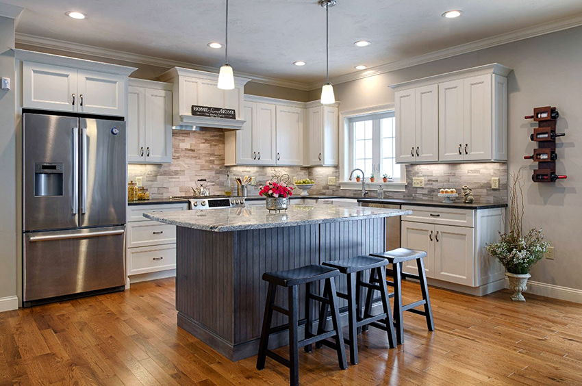 Al crear un proyecto, un factor como el tipo de mobiliario, que puede ser empotrado o modular, juega un papel importante. También debe tenerse en cuenta que la base para determinar los tamaños estándar de los gabinetes es la altura promedio de una persona, que es de 170 cm Por lo tanto, si el crecimiento de los hogares es mayor o menor que los parámetros especificados, debe considerar la opción de hacer muebles por encargo. Esto también se aplica si la cocina tiene un área pequeña o una forma irregular.
