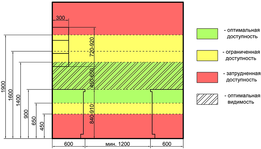¡Consejo útil! Se permite ajustar la profundidad de los gabinetes de pared según la altura de la persona. En personas altas, puede alcanzar los 60 cm.