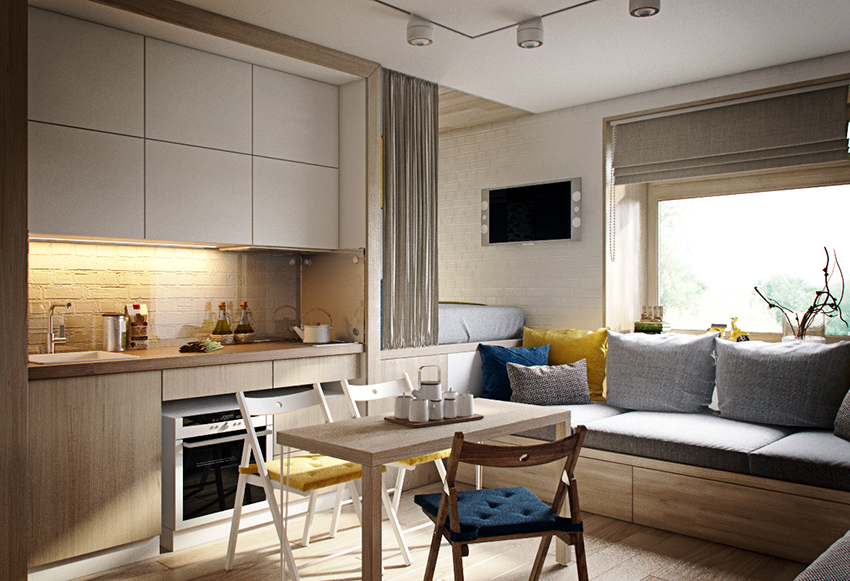 Armario de cocina: ergonomía y comodidad en una habitación pequeña