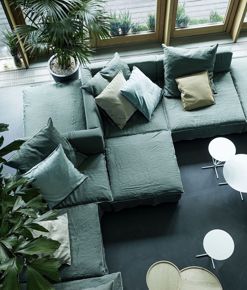 Varias formas de sofás modulares: esquina, cuadrado, rectangular