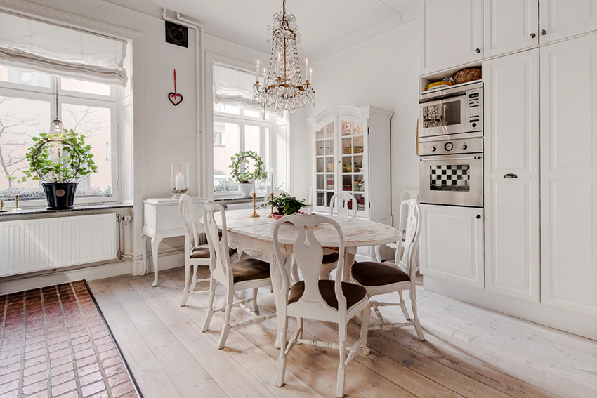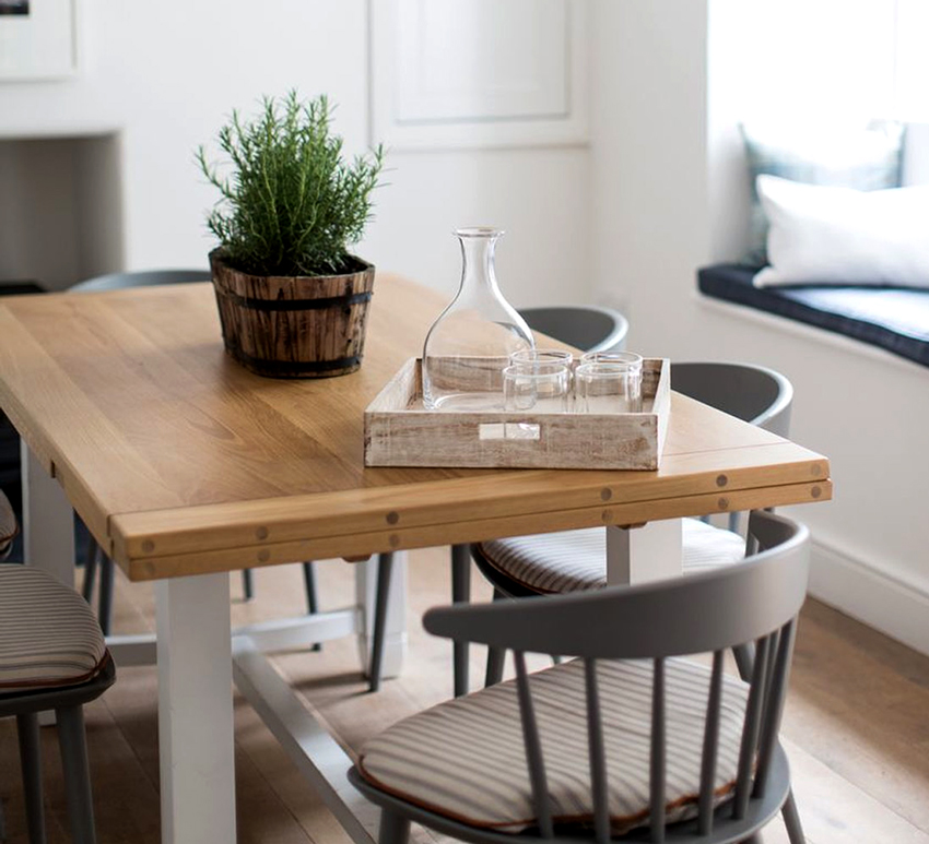 Además, no olvides que mesa idealmente debe encajar en el interior circundante y completar el diseño de la habitación. Para hacer esto, debe pensar en el proyecto de la cocina con anticipación hasta el más mínimo detalle y elegir la opción adecuada. No debe comprar una mesa de comedor por separado; es mejor pensar en todo el entorno de la cocina con anticipación, incluidos los gabinetes, las encimeras, el papel tapiz y otros accesorios. Los diseñadores aconsejan comprar una mesa y sillas en la etapa final para estar al tanto de todos los matices a la hora de comprar y no confundirse con el tamaño y la forma.
