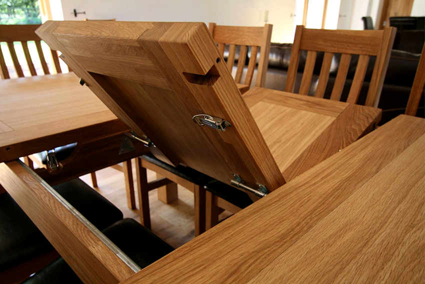 Una mesa de cocina deslizante hecha de madera será una decoración para cualquier cocina, pero es especialmente adecuada para habitaciones decoradas con un diseño clásico. Con materiales bien elegidos y el cuidado adecuado, dicho producto durará mucho tiempo. La principal desventaja es su gran peso. Las principales ventajas de las mesas de madera: